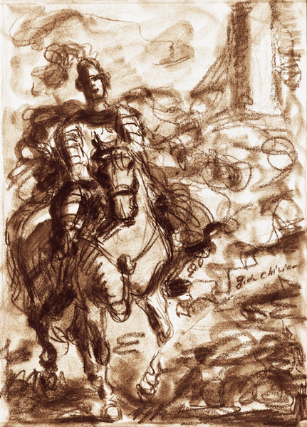 Soltanto un cavaliere, solitario e smunto - la fronte liliacea imperlata di pena febbrile, le gote che avvizziscono - vaga in quella desolazione. Che gli è accaduto?