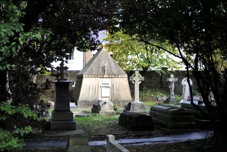 La sua tomba, a forma di tenda beduina, in marmo di Carrara, si trova nel camposanto della St.