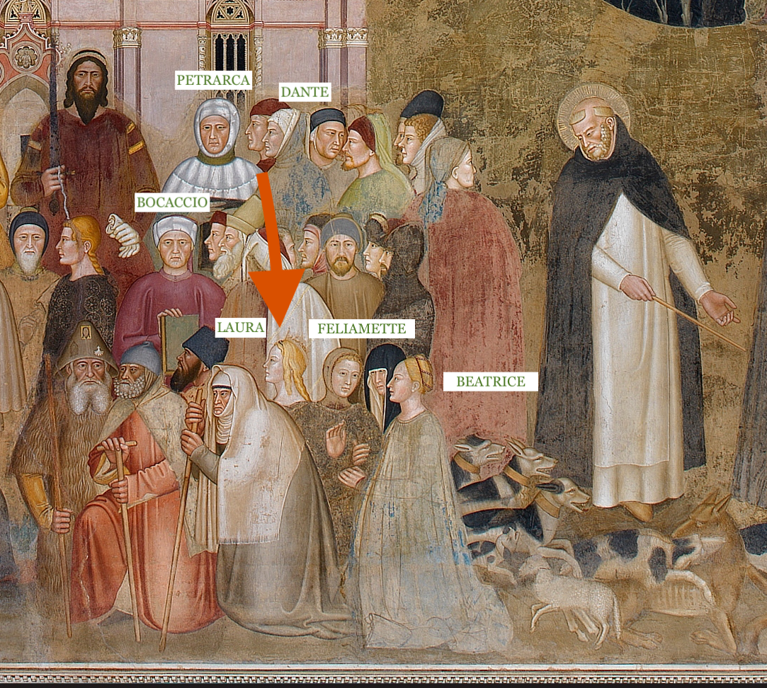 Un ritratto di Laura (quanto reale?) si trova nell'affresco La Chiesa militante e trionfante 1365-1367