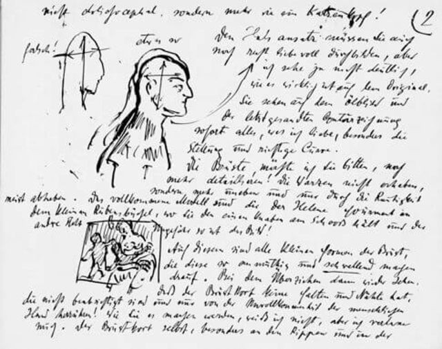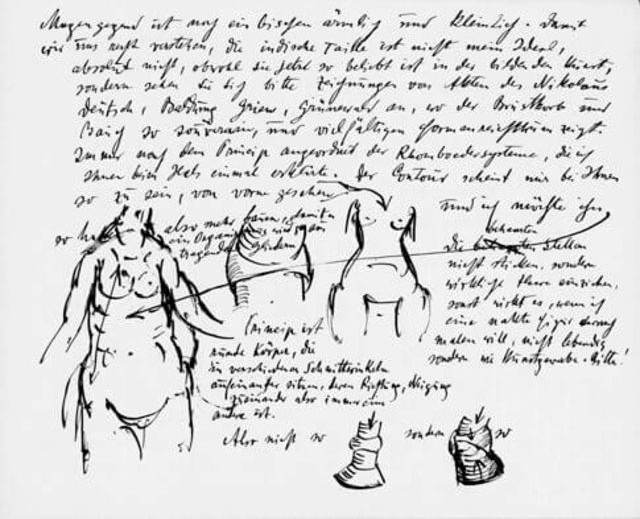 [...] vi ho spedito la figura grandezza naturale della mia amata, che imiterete al meglio facendo appello a tutta la vostra pazienza e alla vostra sensualità. Vi prego, fate il possibile perché si possa provare piacere a toccarla nei punti del grasso e dove i muscoli cessano improvvisamente per lasciar posto alla pelle tesa. L'alternanza tra grasso e masse muscolose li potete vedere nelle macchie bianche. Così che il ventre e le masse muscolari risultino fiere e sode.