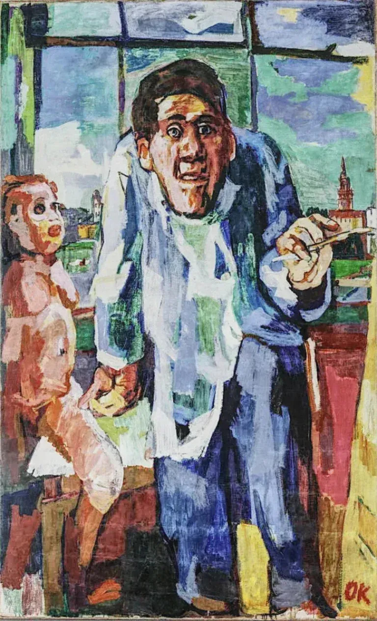 Quel che conta nel quadro adesso è lui, il pittore sfigurato, grottesco, ma al lavoro. Dopo la guerra, la malattia, la separazione da Alma, la lunga crisi professionale, Kokoschka è tornato a dipingere.