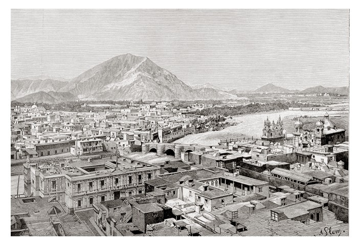 E nemmeno sono affatto i ricordi dei suoi terremoti distruttori di cattedrali, né gli stampedi del suo mare impazzito, né la spietatezza dei suoi aridi cieli senz'acque, né la vista del suo immenso campo di guglie piegate, di volte divelte, di croci cadenti (come i pennoni obliqui di flotte ancorate), né i suoi viali suburbani di pareti precipitate l'una sull'altra come un mazzo di carte sparso: non è nessuna di queste cose soltanto che faccia di Lima senza lacrime, la più strana, la più triste città che si possa vedere. Poiché Lima ha indossato il velo bianco, e c'è in questa bianchezza del suo dolore un orrore più grande. Antica come Pizarro, questa bianchezza mantiene le rovine di Lima per sempre attuali: non vi lascia entrare l'allegro verde della rovina assoluta e distende sopra i suoi bastioni infranti l'irrigidito pallore di un colpo apoplettico che immobilizza le sue stesse distorsioni.