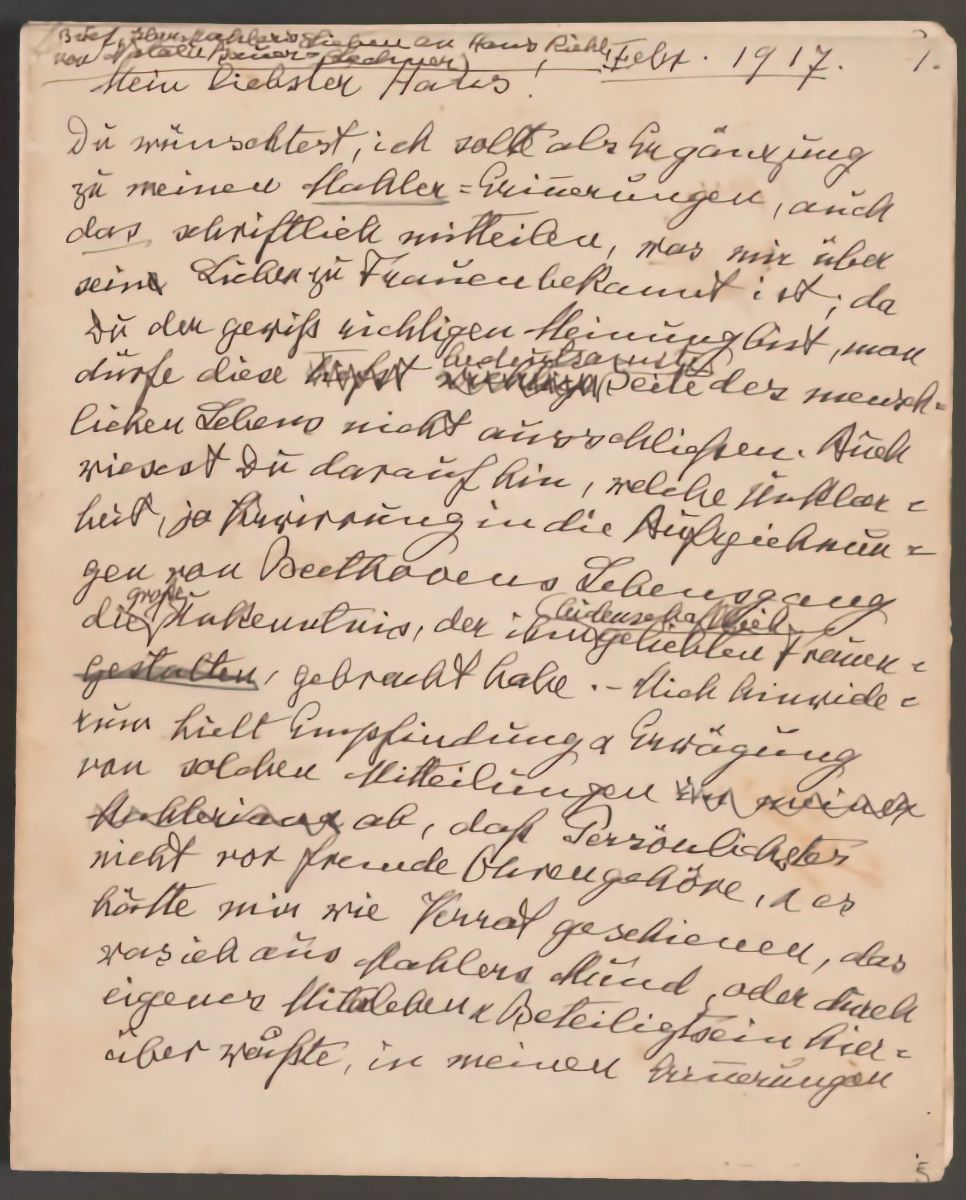 Questa Lettera sugli amori di Mahler, scritta nel 1916 all'amico e poi erede Hans Riehl, merita