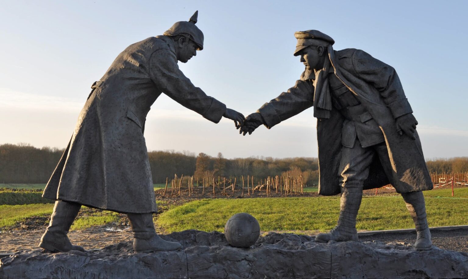 La statua che a Ypres in Belgio ricorda la Tregua di Natale del 1914