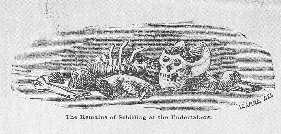 Hearn seguì da vicino il caso, accompagnando la polizia e il coroner mentre interrogavano i testimoni ed i sospetti. Quando il cadavere carbonizzato di Schilling fu portato presso un'impresa di pompe funebri Hearn riuscì a vederlo per poi descriverlo ai suoi affezionati lettori: