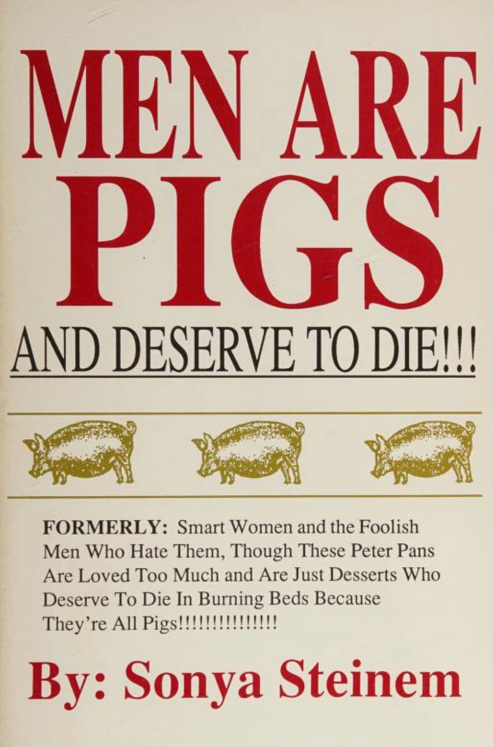 Continuando a curiosare in internet ho trovato libri molto più estremisti come questo di Sonya Steinmen che, dopo aver riaffermato nel titolo che gli Uomini son tutti maiali, conclude con un perentorio "e meritano di morire!!!"