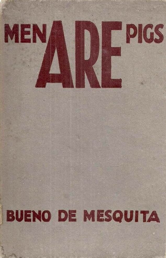 Oggi il vostro romantico Tarlo vi propone un libro che prende una decisa posizione su uno dei più antichi e controversi quesiti dell'umanità: "Gli uomini sono tutti maiali?". Si tratta di un volumetto di un centinaio di pagine, pubblicato in Gran Bretagna da Purnell & Sons nel 1927 e mai tradotto in italiano. La copertina ci segnala unicamente il cognome dell'autrice e solo dopo meticolose ricerche si può ragionevolmente affermare che si tratta di Irene Jessie Bueno de Mesquita. Le notizie biografiche su di lei sono limitatissime; sappiamo che nacque a Londra nel 1896, che suo padre era il dr. Solomon Bueno de Mesquita e la madre Rosetta Van Den Bergh, che si sposò nel 1934 con Richard R. Thomson, che fu una femminista e che fu autrice di un solo altro libro: "Lady, This Is Love", pubblicato nel 1930 e del tutto introvabile.