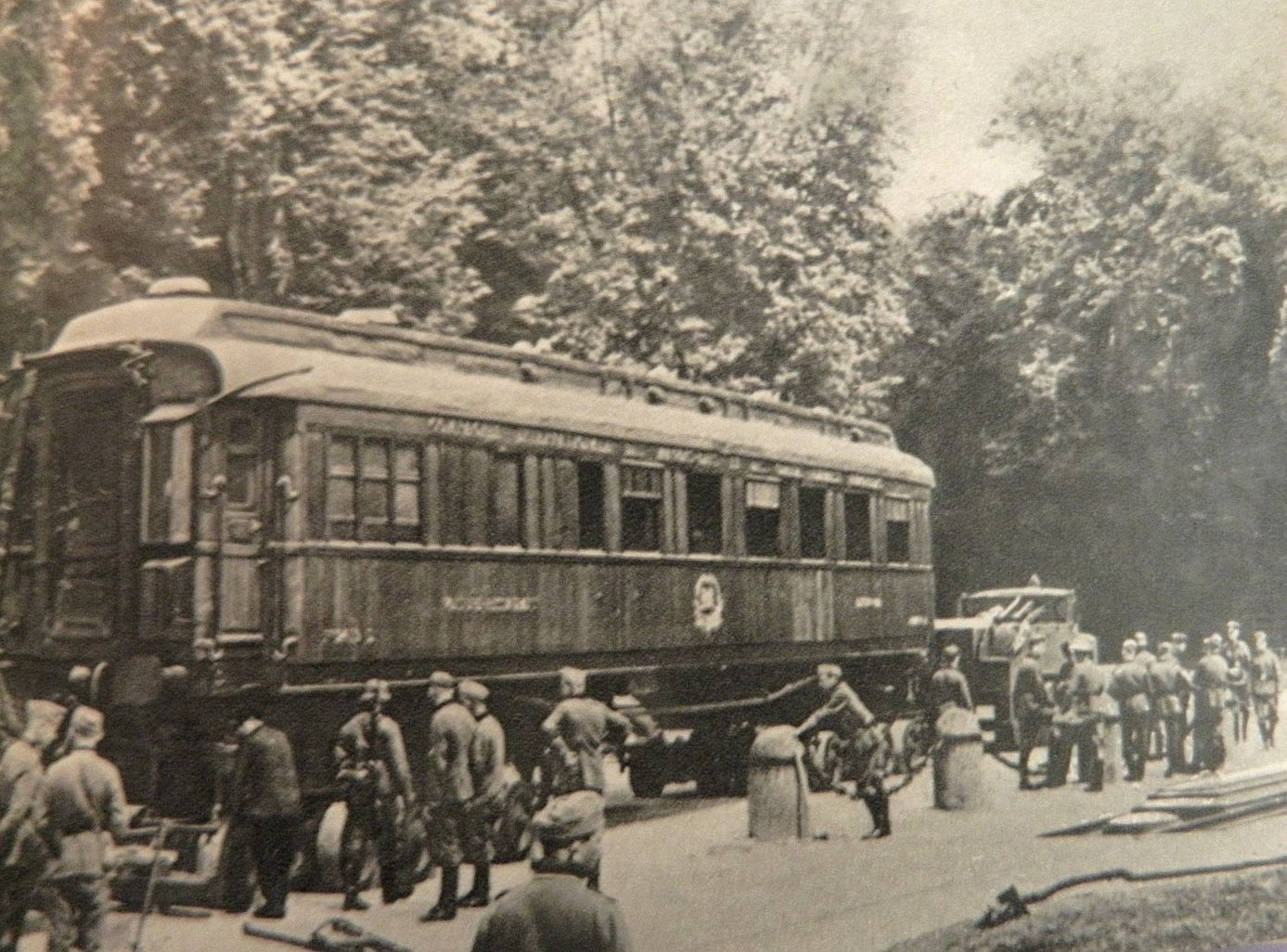 Il 14 giugno 1940 la città di Parigi fu occupata dall'esercito tedesco. I soldati con in testa la bandiera con la croce uncinata sfilarono in parata sui Champs-Élysées, mentre i parigini assistevano con tristezza e sgomento e molti dei più anziani non riuscivano a trattenere le lacrime. Pochi giorni dopo, il 22 giugno, nella foresta di Compiègne, fu firmato l'armistizio tra la Germania nazista e la Terza Repubblica Francese. Per sottolineare l'umiliazione della disfatta Hitler pretese che la firma avvenisse nello stesso vagone ferroviario in cui, ventidue anni prima, era stato firmato l'armistizio che aveva posto fine alla Prima guerra mondiale. Subito dopo il vagone fu trasportato a Berlino per essere esposto nel Duomo della capitale.