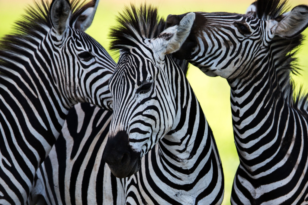 Insoddisfatte della loro chiara evidenza spaziale, le zebre si esercitano peraltro nel gusto senza limiti per le varianti individuali, e non ce n'è una che abbia le stesse strisce dell'altra. Anonime e solipedi, portano a spasso l'enorme impronta digitale che le contraddistingue: tutte zebrate, ma ognuna a modo suo.