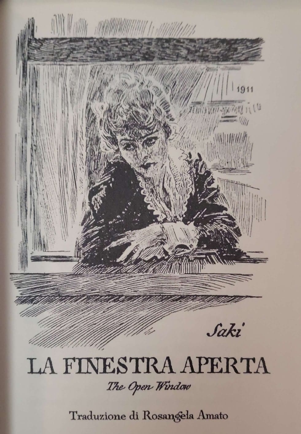«Proprio da quella finestra, esattamente tre anni fa, suo marito e i suoi due fratelli più giovani uscirono per la battuta di caccia quotidiana. Non sono mai tornati. Mentre attraversavano la brughiera, diretti al loro terreno preferito per la caccia ai beccaccini, furono inghiottiti tutti e tre da un insidioso tratto di palude. C'era stata una terribile estate piovosa, sapete, per cui i luoghi che erano stati sicuri in altri tempi cedevano improvvisamente. Ma la parte orribile è che i loro corpi non sono mai stati recuperati.» Qui, la voce della ragazzina perse il suo tono posato e divenne umana ed esitante. «Povera zia, pensa sempre che possano tornare, un giorno, insieme al piccolo spaniel bruno che si perse con loro, entrando da quella finestra come facevano di solito. Ecco il motivo per cui la finestra resta aperta ogni pomeriggio fino al tramonto. Povera, cara zia, mi racconta spesso il momento in cui uscirono, suo marito con l'impermeabile bianco sul braccio e Ronnie, suo fratello più piccolo, che cantava "Bertie, why do you bound": la punzecchiava sempre con questa canzone perché lei diceva che le faceva saltare i nervi.»
